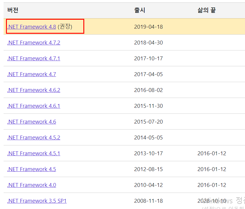 3. 마이크로소프트 닷넷 프레임워크 4.8 다운로드